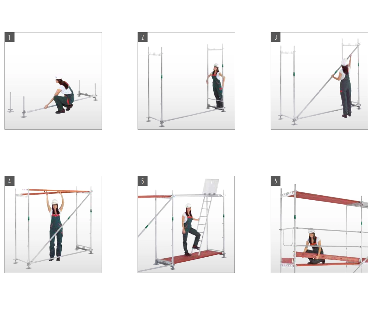 Léty prověřená konstukce lešení MJ UNI 70 , která je kompatibilní i se známějším systémem Plettac, minimalizuje riziko chyb při montáži. Charakteristickým prvkem lešení MJ UNI 70 jsou spoje s kulatými trny a sklopnými čepy. Díky samovyztužovacím podlážkám, které se upevňují na kulaté trny vertikálních rámů, lze sestavu smontovat velmi rychle. Tento systém také zabraňuje nechtěnému vysmeknutí podlážek a zvyšuje celkovou bezpečnost. Sklopné čepy na vertikálních rámech umožňují snadné upevnění zábradlí a diagonál bez potřeby nářadí.