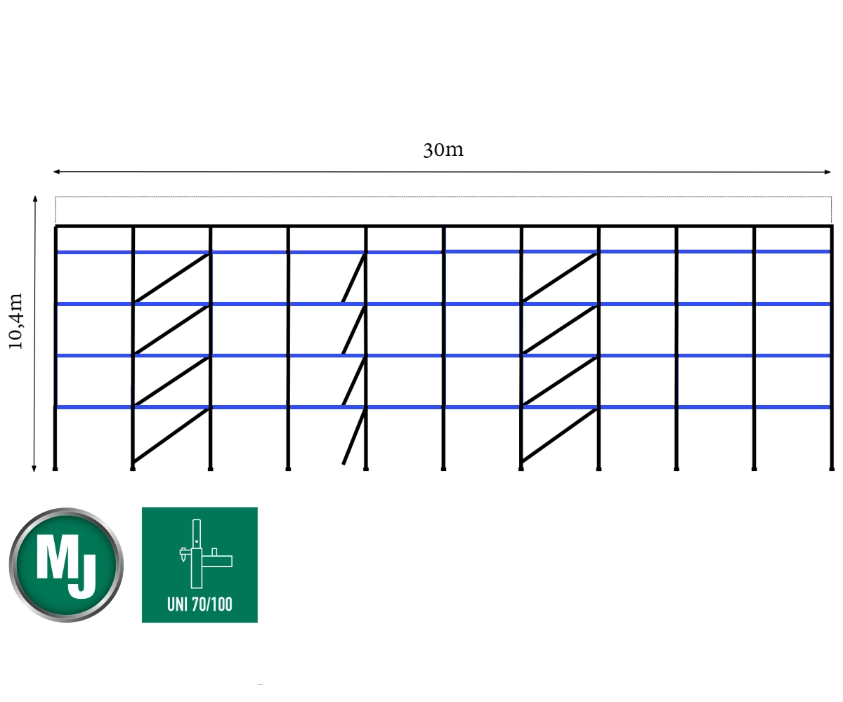 Kompletní sada rámového lešení MJ UNI 70 přináší kvalitu, dlouhou životnost materiálů, rychlou montáž a bezpečnost při montáži i používání.